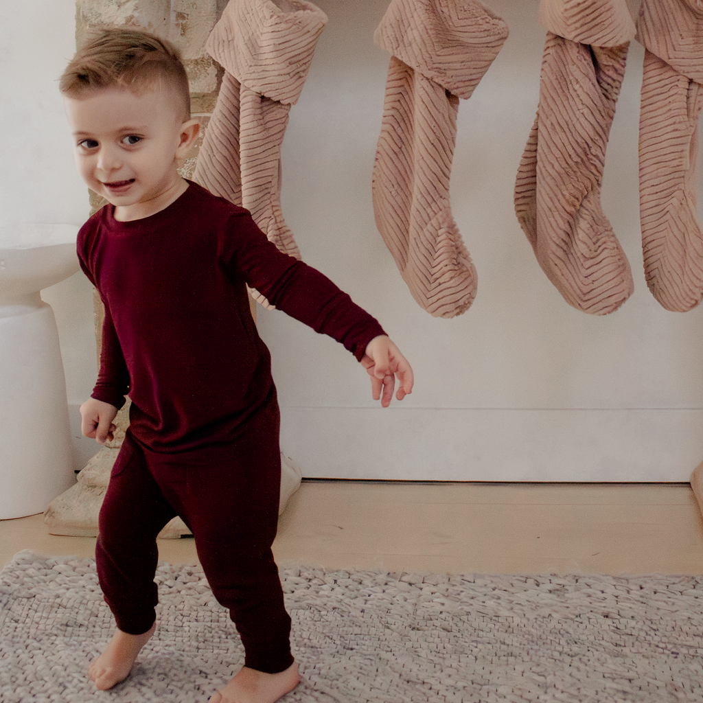 Burgundy Ribbed Bamboo 2-Piece Long Sleeve Jogger Set