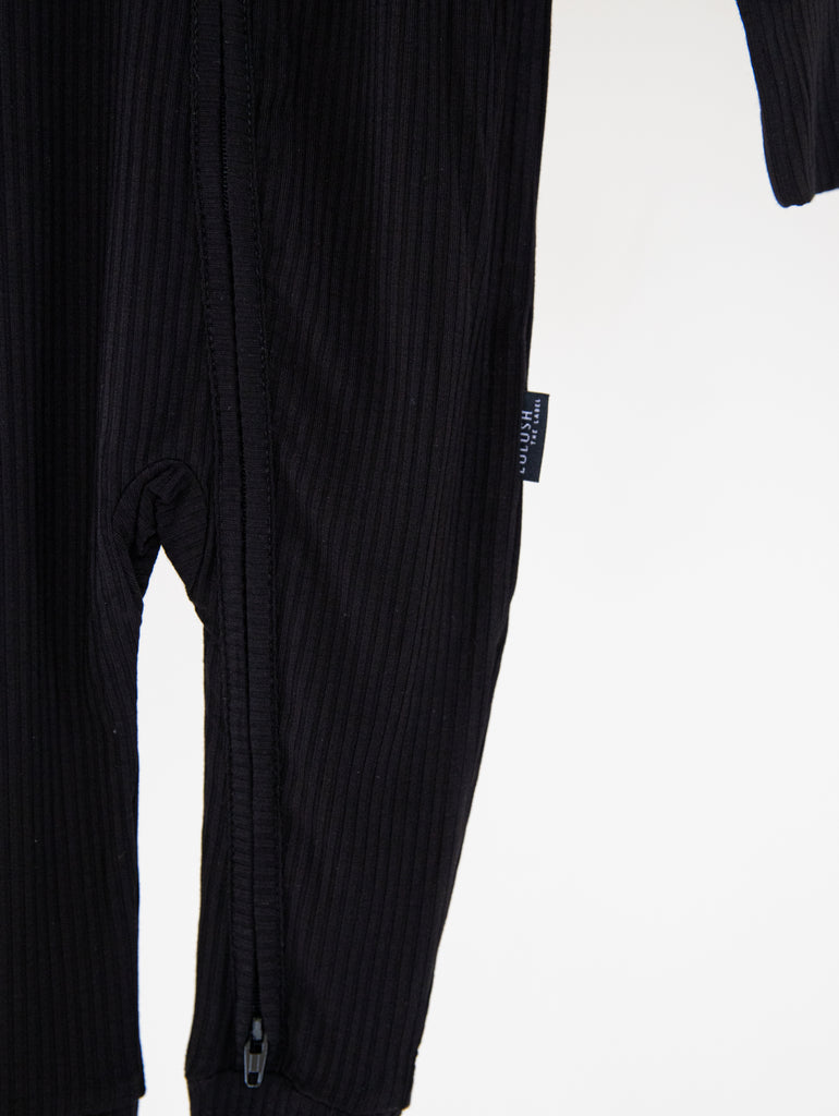 Jet Black Ribbed Bamboo Convertible Zippered Romper