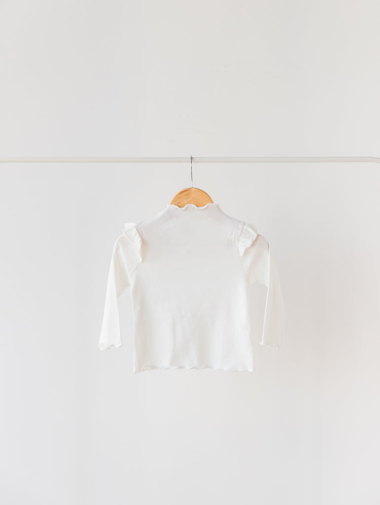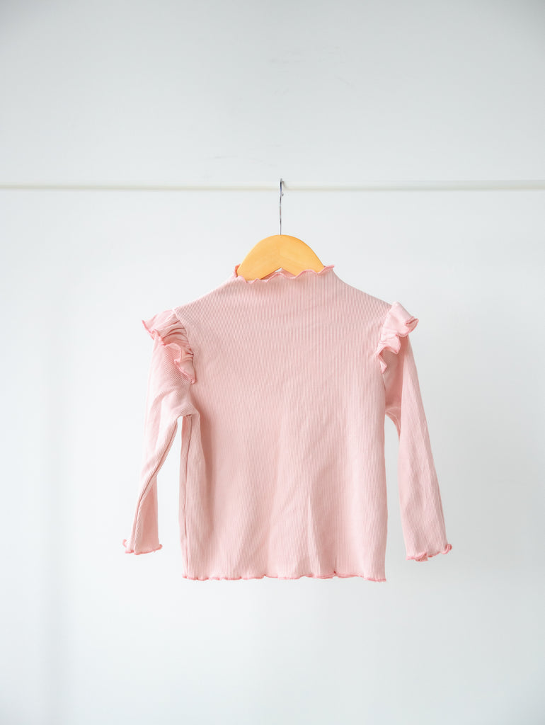 The cutest ruffle turtleneck top, made to wear with denim or leggings.